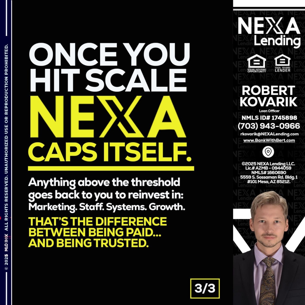 Hi, my name is Robert Kovarik. I’m a Loan Officer with NEXA Lending LLC., offering personalized mortgage solutions, fast customized quotes, great rates and service with integrity.