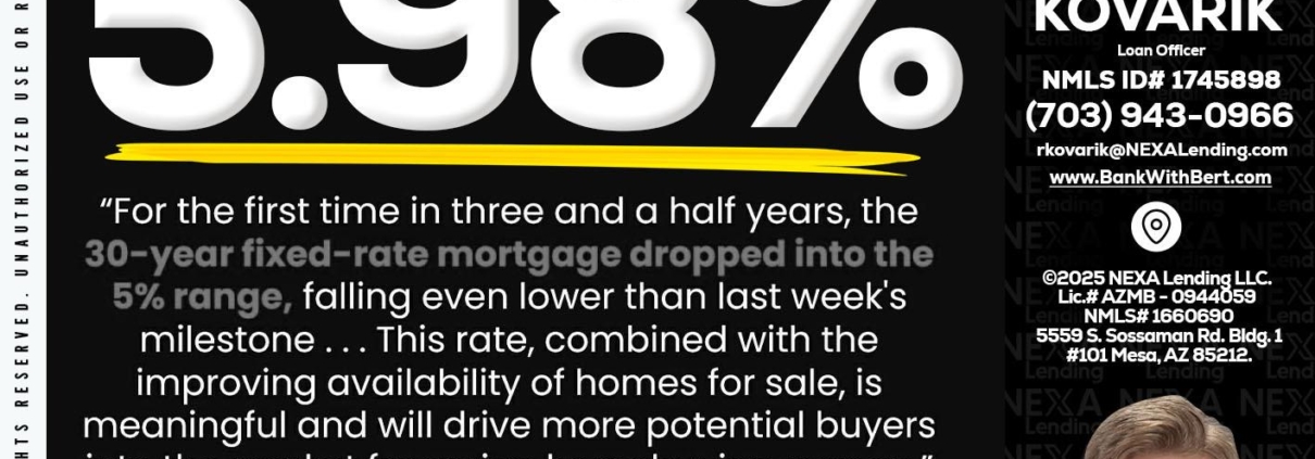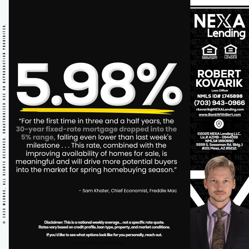 Hi, my name is Robert Kovarik. I’m a Loan Officer with NEXA Lending LLC., offering personalized mortgage solutions, fast customized quotes, great rates and service with integrity.