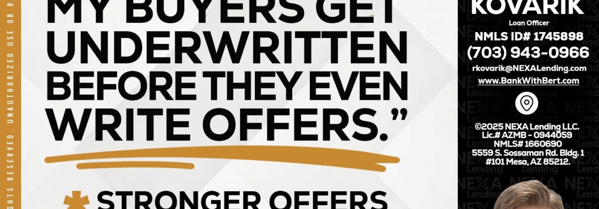 Hi, my name is Robert Kovarik. I’m a Loan Officer with NEXA Lending LLC., offering personalized mortgage solutions, fast customized quotes, great rates and service with integrity.