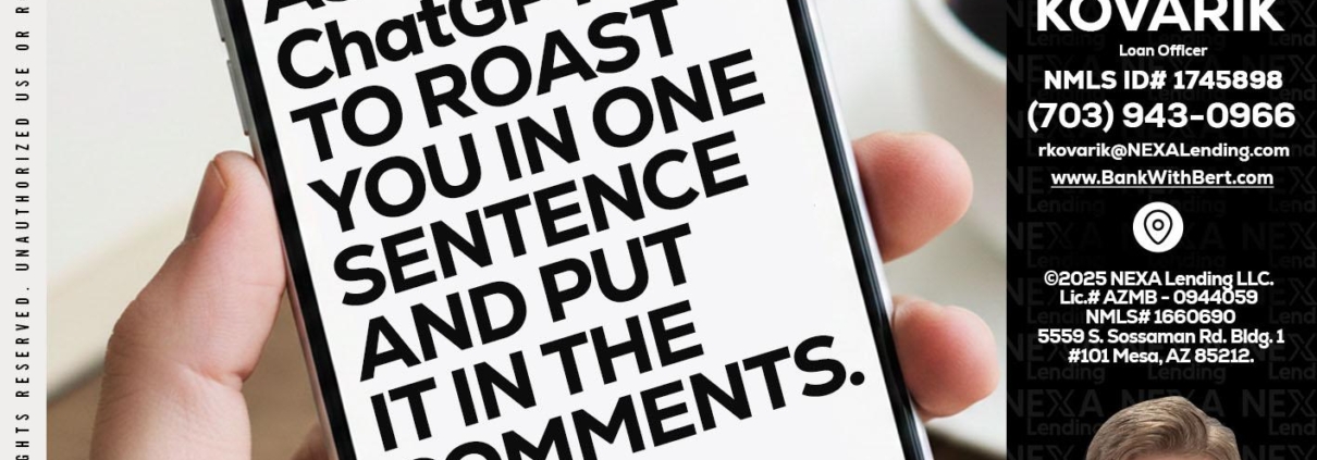 ask chatgpt - Robert Kovarik -Mortgage Loan OriginatorHi, my name is Robert Kovarik. I’m a Loan Officer with NEXA Lending LLC., offering personalized mortgage solutions, fast customized quotes, great rates and service with integrity.