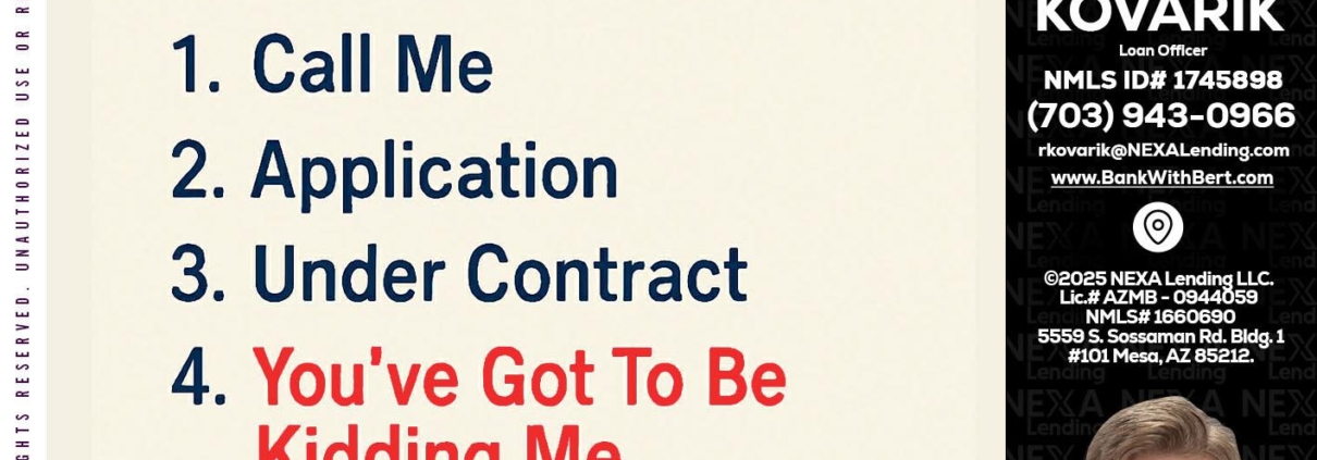 Hi, my name is Robert Kovarik. I’m a Loan Officer with NEXA Lending LLC., offering personalized mortgage solutions, fast customized quotes, great rates and service with integrity.