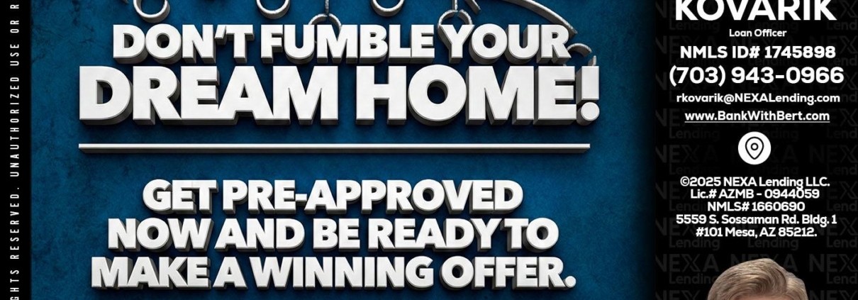 Hi, my name is Robert Kovarik. I’m a Loan Officer with NEXA Lending LLC., offering personalized mortgage solutions, fast customized quotes, great rates and service with integrity.