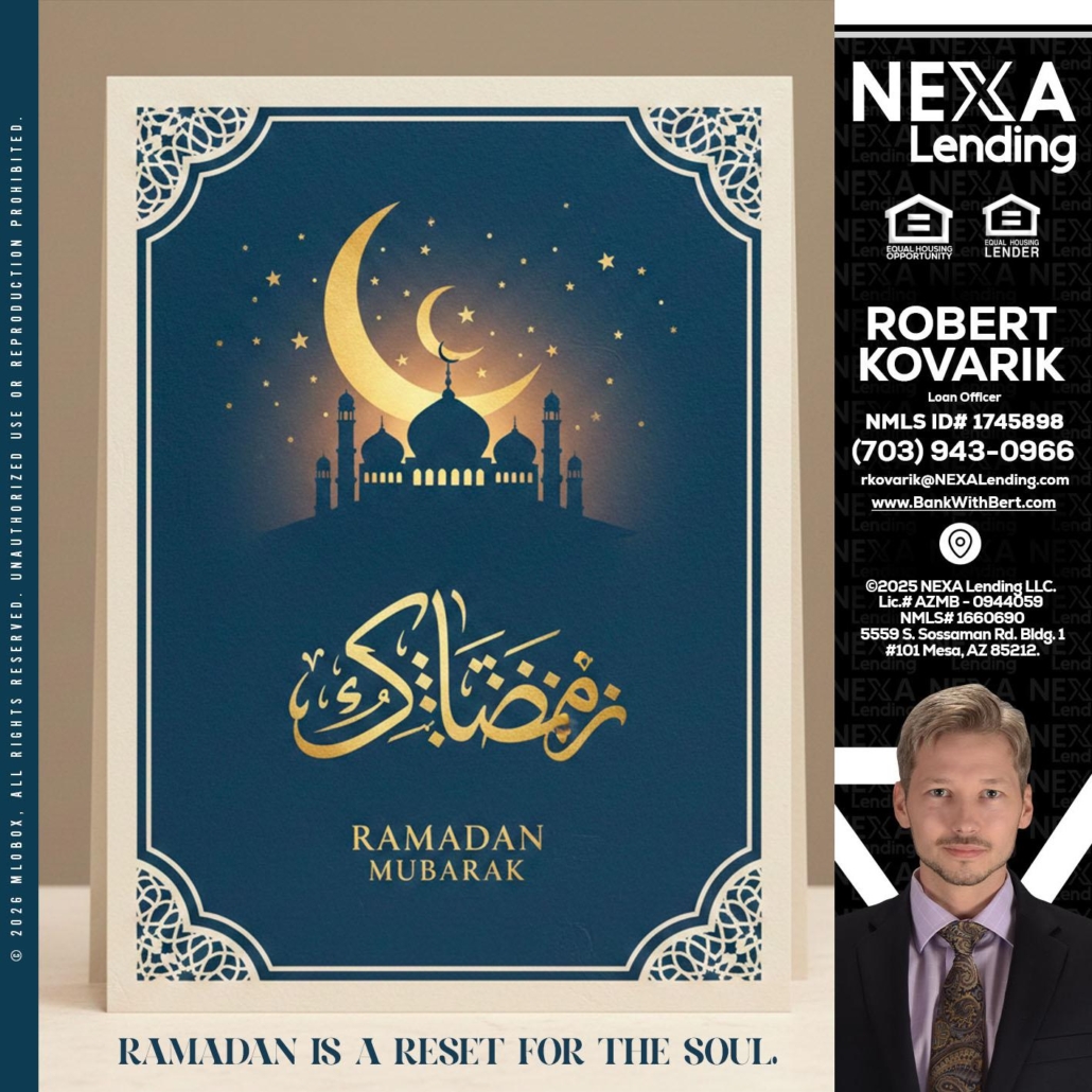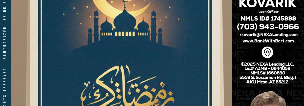 HAPPY RAMADAN - Robert Kovarik -Mortgage Loan OriginatorHi, my name is Robert Kovarik. I’m a Loan Officer with NEXA Lending LLC., offering personalized mortgage solutions, fast customized quotes, great rates and service with integrity.