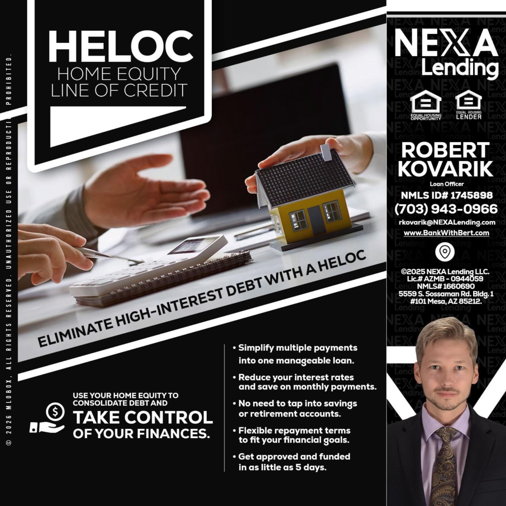Hi, my name is Robert Kovarik. I’m a Loan Officer with NEXA Lending LLC., offering personalized mortgage solutions, fast customized quotes, great rates and service with integrity.