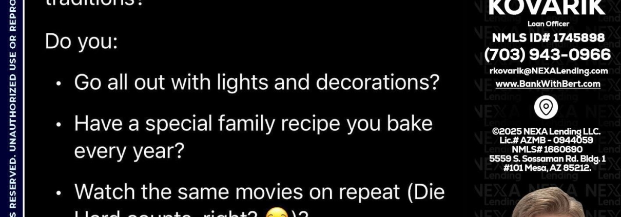 Hi, my name is Robert Kovarik. I’m a Loan Officer with NEXA Lending LLC., offering personalized mortgage solutions, fast customized quotes, great rates and service with integrity.