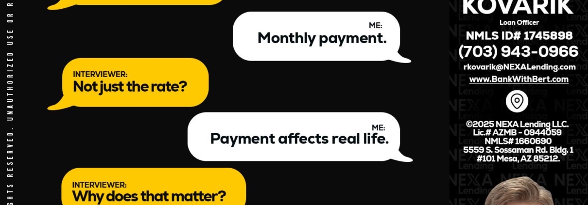 Hi, my name is Robert Kovarik. I’m a Loan Officer with NEXA Lending LLC., offering personalized mortgage solutions, fast customized quotes, great rates and service with integrity.