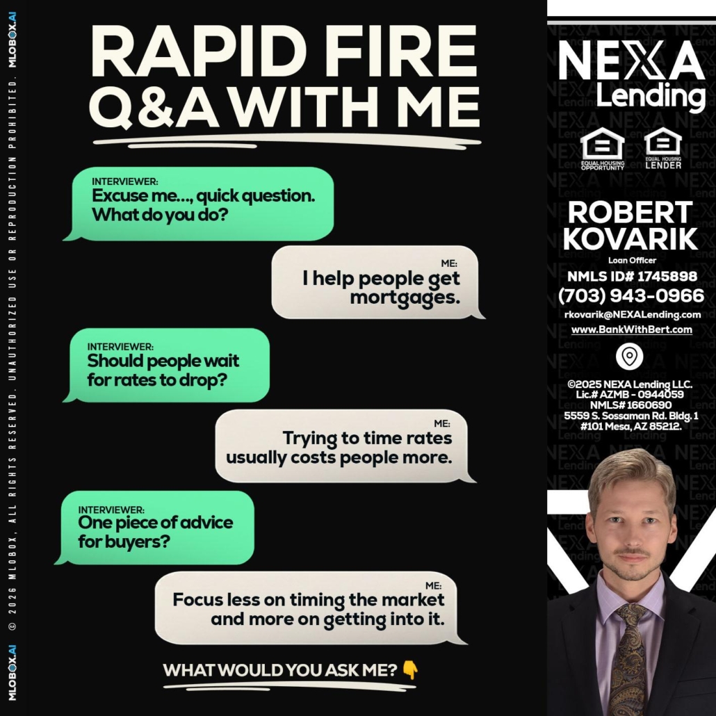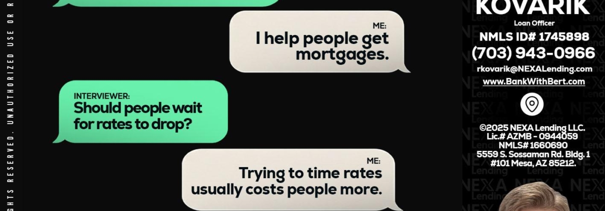 Hi, my name is Robert Kovarik. I’m a Loan Officer with NEXA Lending LLC., offering personalized mortgage solutions, fast customized quotes, great rates and service with integrity.