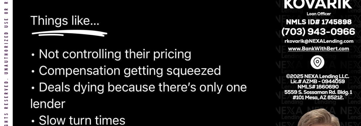 WHY NEXA - Robert Kovarik -Mortgage Loan OriginatorHi, my name is Robert Kovarik. I’m a Loan Officer with NEXA Lending LLC., offering personalized mortgage solutions, fast customized quotes, great rates and service with integrity.