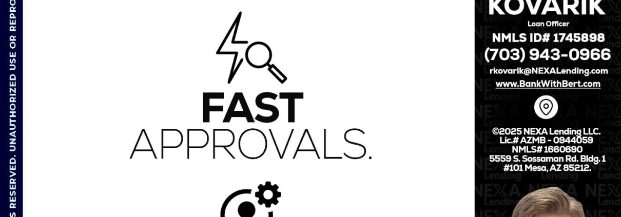 WITH COMPETITIVES RATES - Robert Kovarik -Mortgage Loan OriginatorHi, my name is Robert Kovarik. I’m a Loan Officer with NEXA Mortgage LLC., offering personalized mortgage solutions, fast customized quotes, great rates and service with integrity.